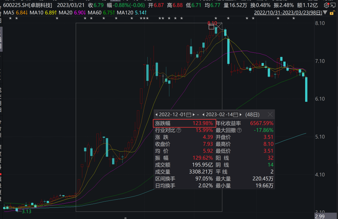 据了解, 卓朗科技是天津市信创领域第一家本土上市企业。此前蹭上国资云概念,股价在短短3个月内,涨超120%。
