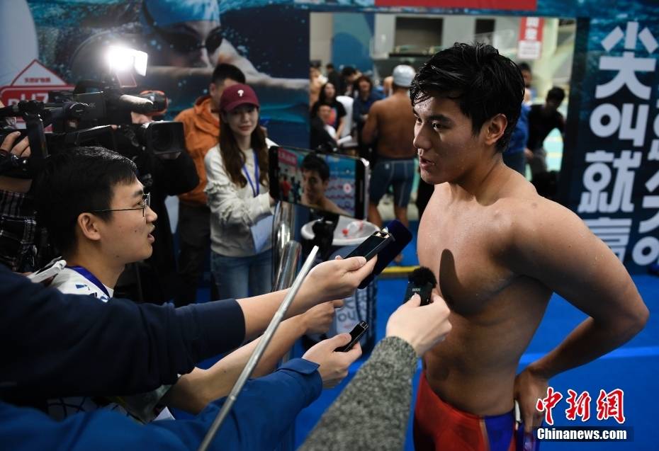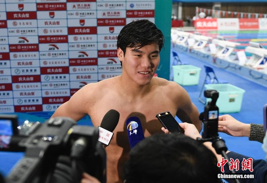 3月23日,王长浩赛后接受媒体采访。当日,2023年全国春季游泳锦标赛男子50米蝶泳预赛在山东青岛举行,天津队选手王长浩以23秒32的成绩打破该项目的全国纪录(23秒36)。中新社记者 王刚 摄