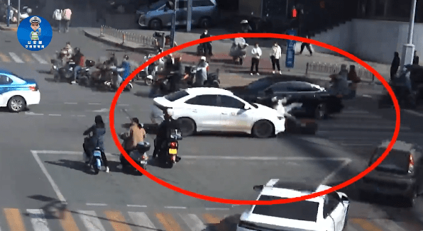 3月6日,山西晋城。李某驾驶电动车在路口,未经观察突然向左转弯闯红灯通行,因受左转待转区内车辆遮挡,被对向一辆直行小车撞倒,造成两车损坏。李某幸无大碍。