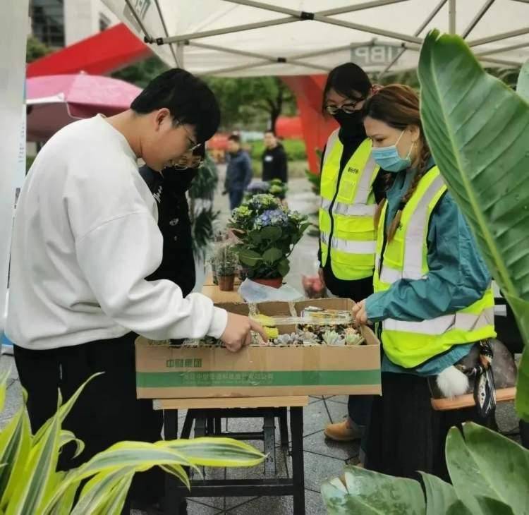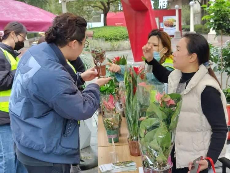 不仅如此,现场还组织了绿植义卖活动。记者看到,海棠、发财树、金钱树、红掌、凤梨、绣球、米兰等绿植花卉均以低于市场的价格进行销售,受到了白领们的喜爱,争相前来购买。