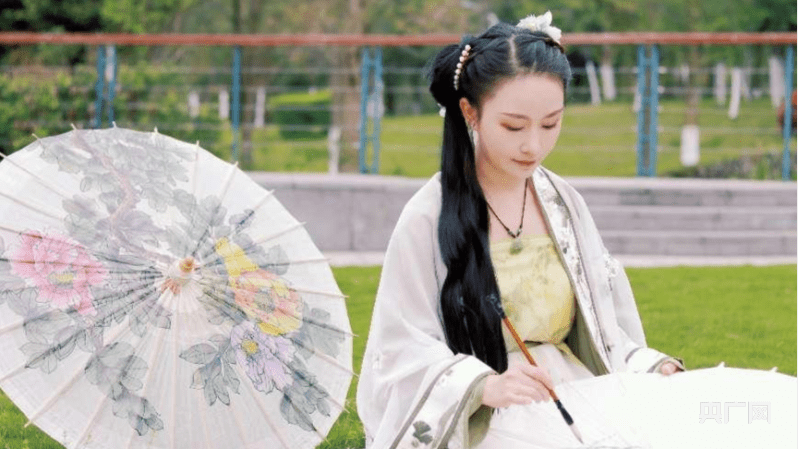 撑起自己绘画的油纸伞(央广网发 重庆城科供图)