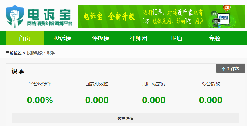 此外,“电诉宝”受理用户维权案例显示,“识季”还涉嫌存在商品质量、霸王条款、退款等问题。