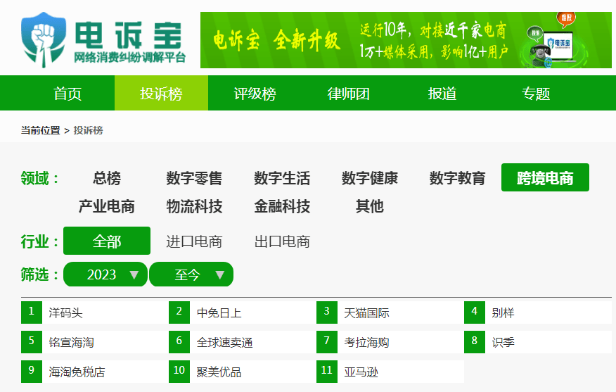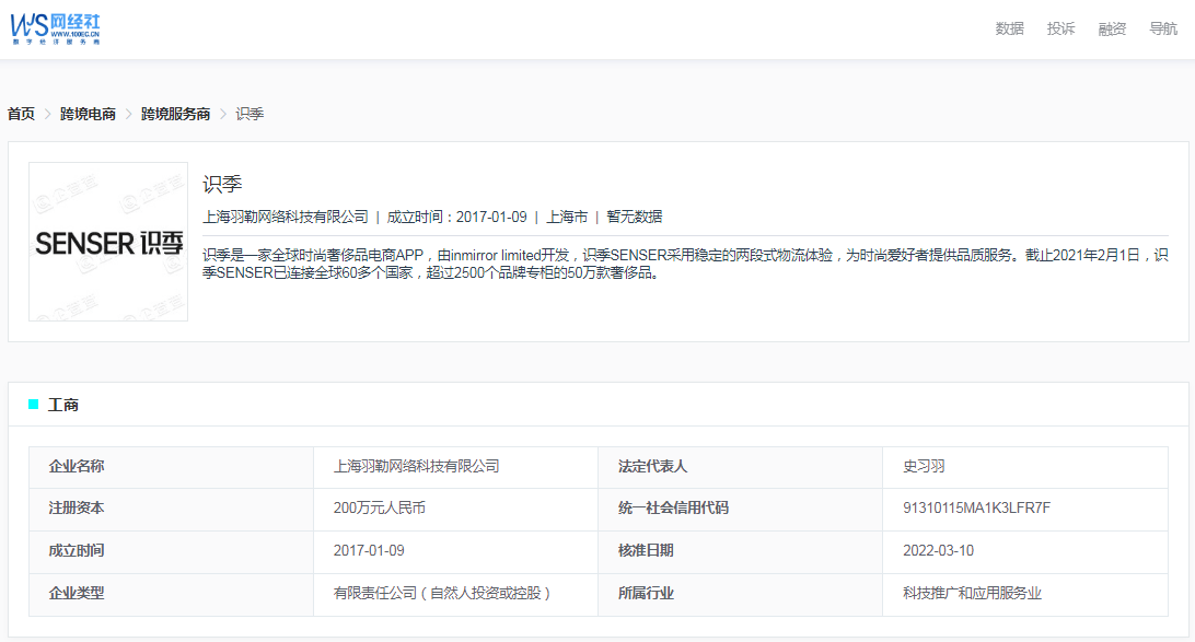 根据“电诉宝”2023年至今受理的跨境电商领域用户有效投诉显示(依据投诉量排行),识季排名第八位。最新评级为“不予评级”。其他被投诉的类似电商平台还有:洋码头、中免日上、天猫国际、别样、铭宣海淘、全球速卖通、考拉海购、聚美优品、亚马逊。