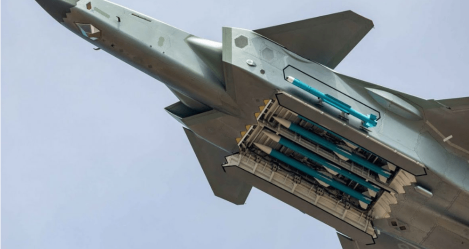 ■ 歼20战斗机的机腹弹舱打开状态,可以看到其深度较浅,难以挂载大尺寸对地弹药
