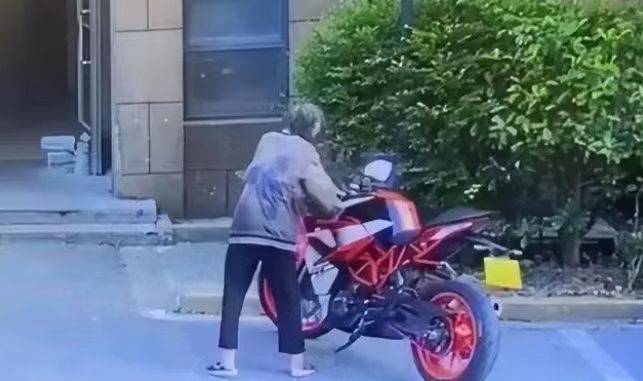 2022年6月25日,上海某小区单元楼门口一辆摩托车,被一老人经过时推倒。事发后经鉴定,摩托车损失达16000多元。网上的一段视频显示,事发时候,一位左手挎着红色袋子的老年人蹒跚踱步经过,注意到了陈先生的摩托车后,缓慢上前使劲将摩托车推倒,随后离开。
