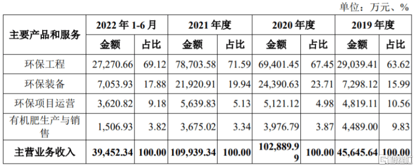 从具体业务来看,报告期内,公司收入主要来源于环保工程、环保装备、环保项目运营和有机肥生产与销售。其中,环保工程营收占比在60%以上,是公司的重要收入来源。