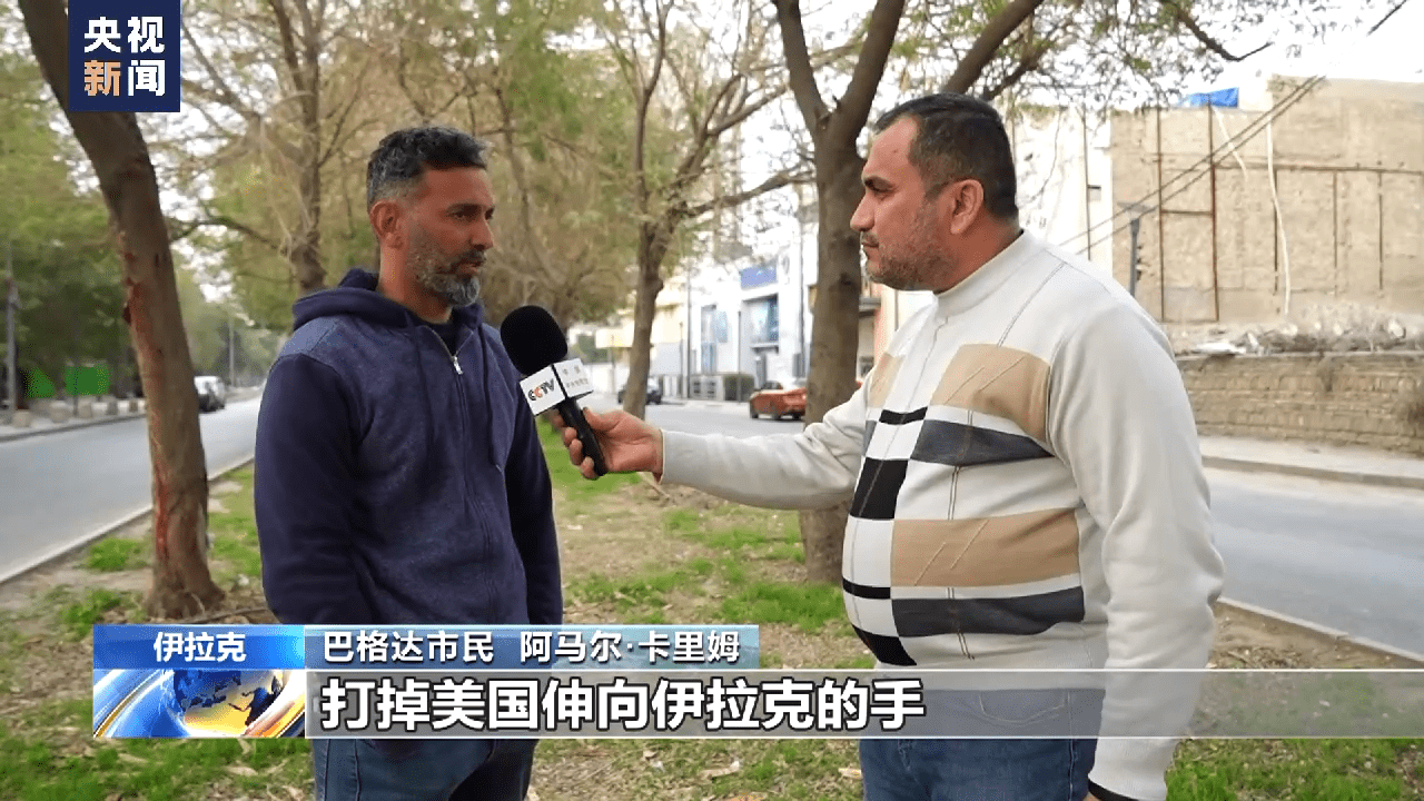 巴格达市民 阿马尔·卡里姆:必须要做的最重要的事情是打掉美国伸向伊拉克的手,以及西方对伊拉克事务的干预,让伊拉克自己发展起来。不幸的是,直到现在我们仍能看到政治层面的干预,甚至在金融层面也有明显的干预。