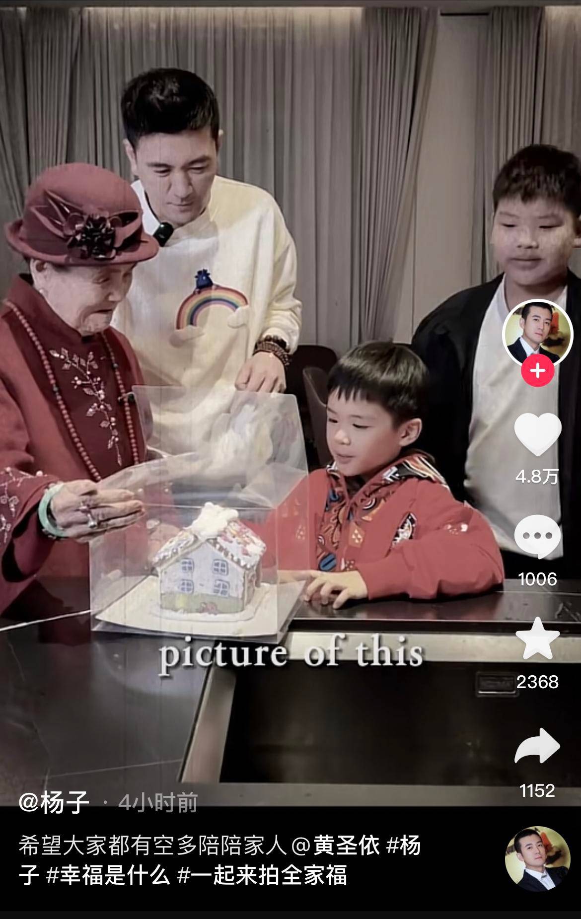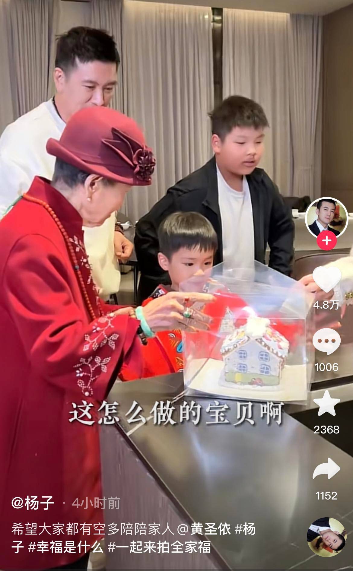 3月24日,黄圣依老公杨子晒出一家5口吃饭的视频,罕见晒出2个儿子。