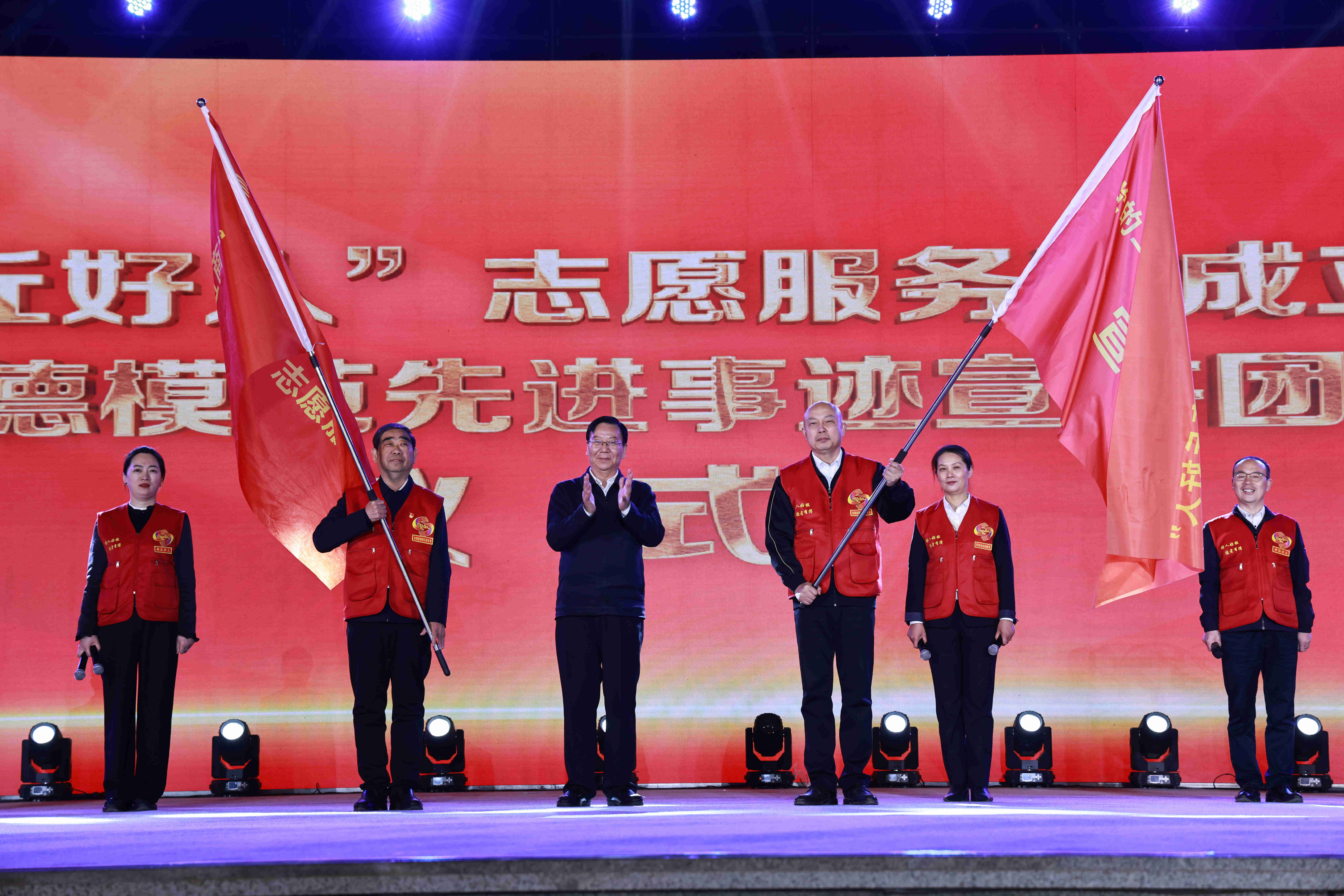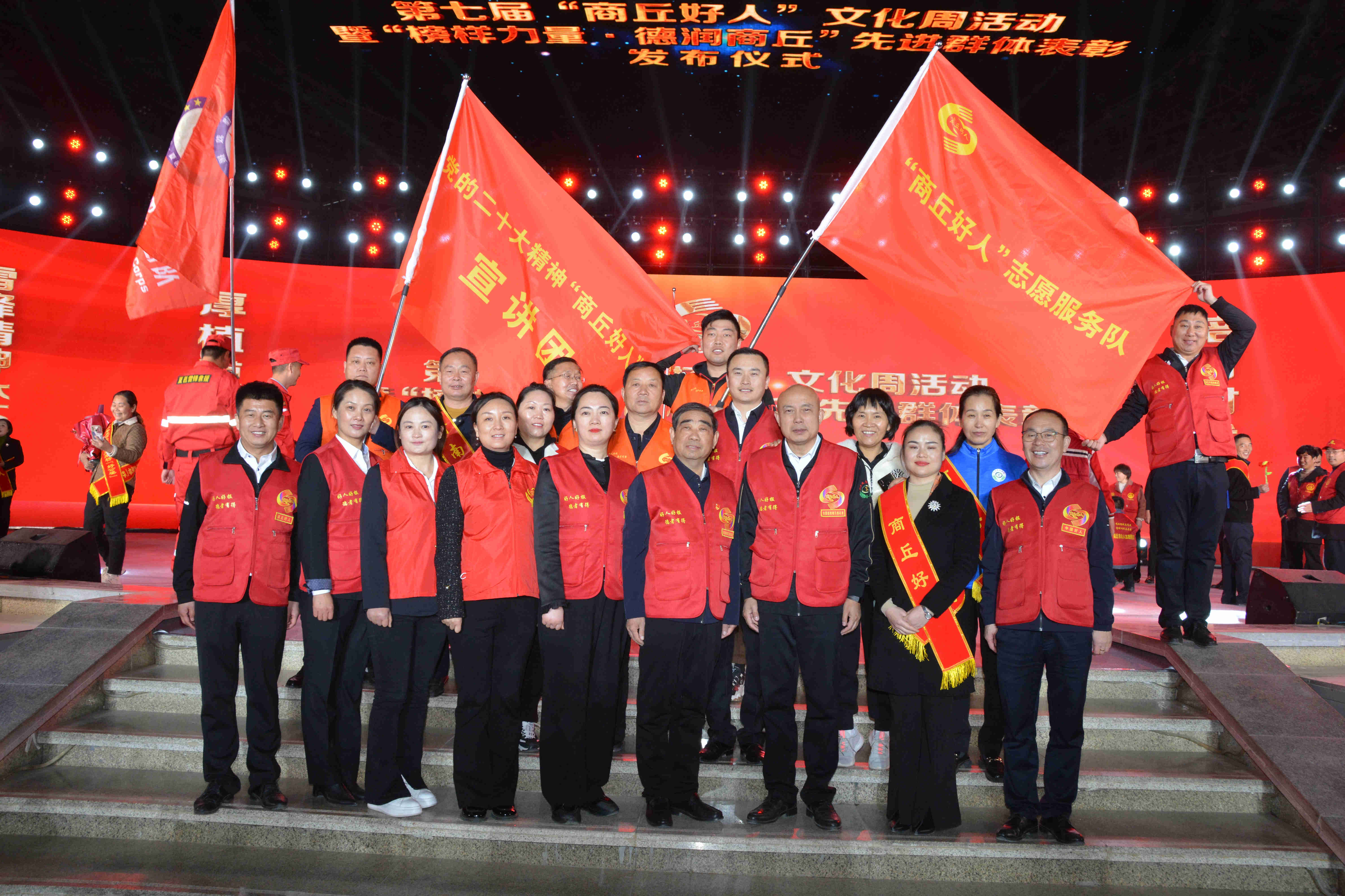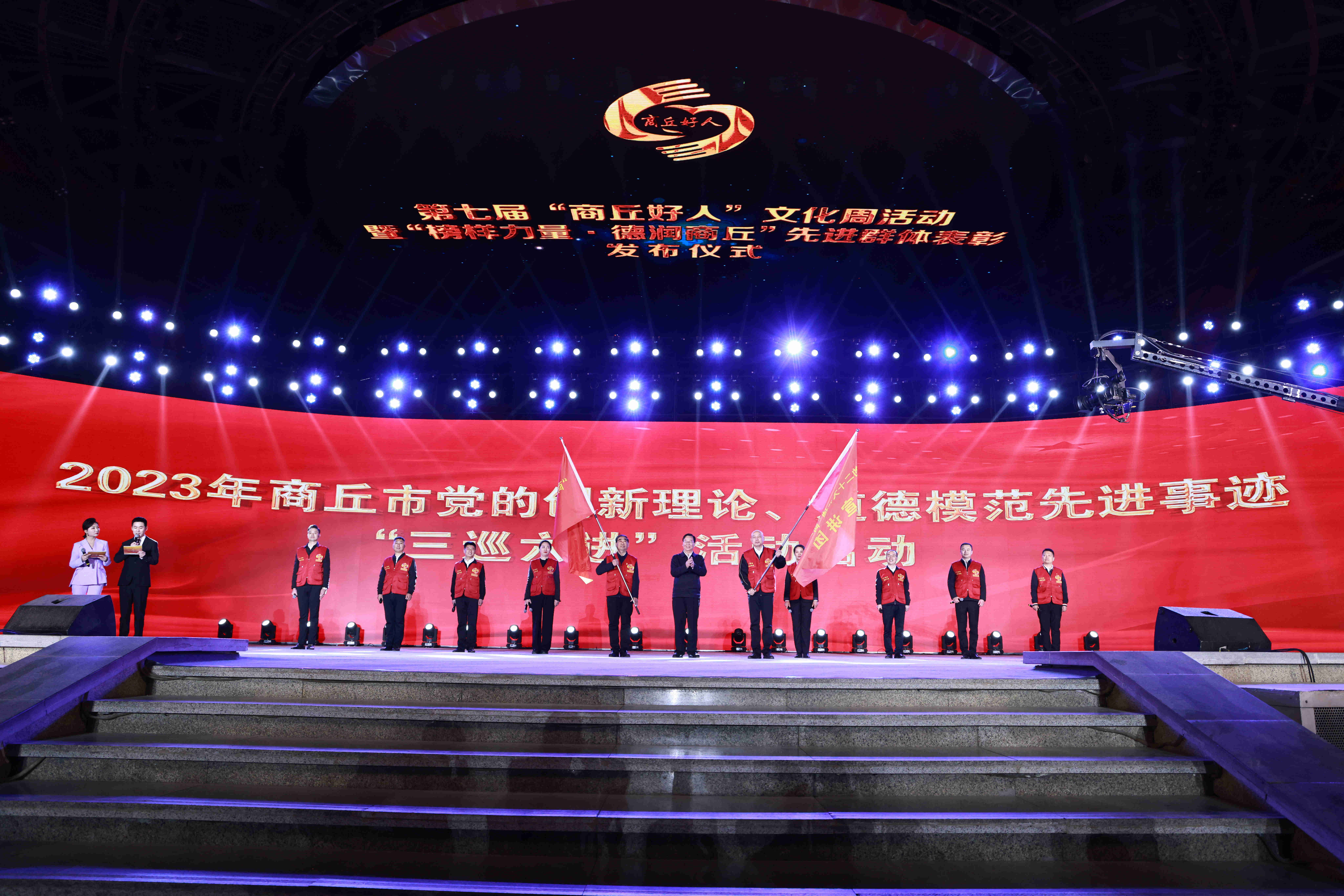 3月23日晚,第七届“商丘好人”文化周系列活动在日月湖“商丘好人”主题公园举行。在“榜样力量·德润商丘”先进群体表彰发布仪式上,举行了“商丘好人”志愿服务队成立仪式,中共商丘市委常委、宣传部部长王全周为“商丘好人”志愿服务队队长李东亮授旗。