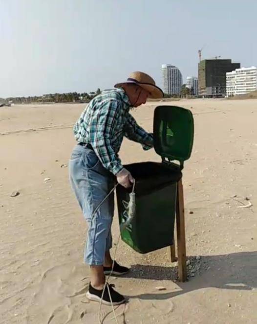 于是,无论是从海上漂上来的垃圾还是被人遗弃在海边的各种垃圾,他都弯腰捡起来。每天早晚时分,他和老伴像是打卡上班一样,一边散步并呼吸着新鲜空气,一边捡拾看到的所有垃圾。这虽然是一件简单的事情,却慢慢引起了周围游客和居民的关注。