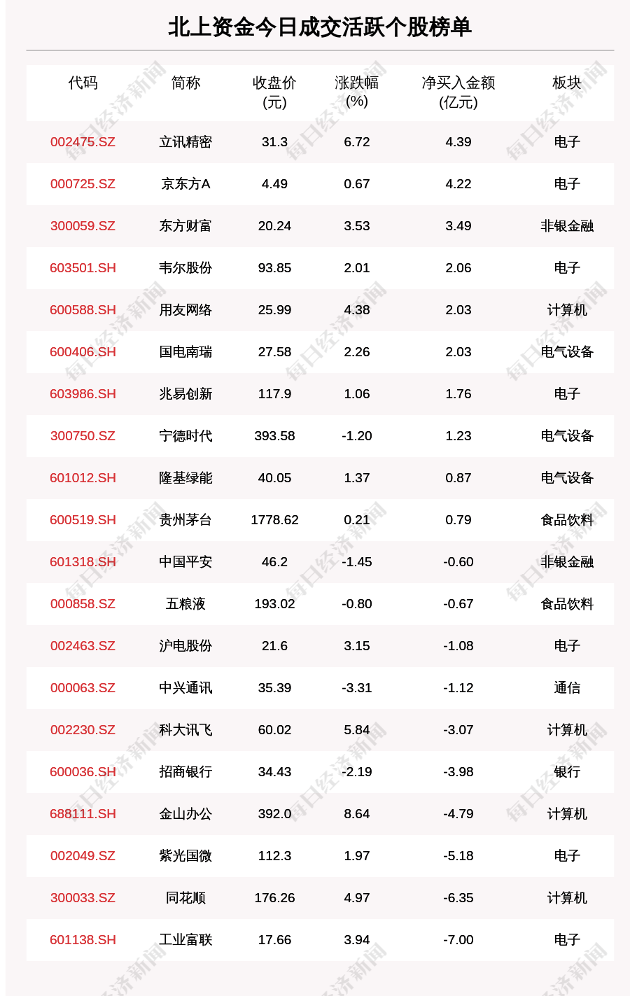 3月24日,北上资金成交活跃个股榜单中,净买入个股共10只,金额最多的是立讯精密(002475.SZ,收盘价:31.3元),净买入4.392亿元;净卖出个股共10只,金额最多的是工业富联(601138.SH,收盘价:17.66元),净卖出7.002亿元。