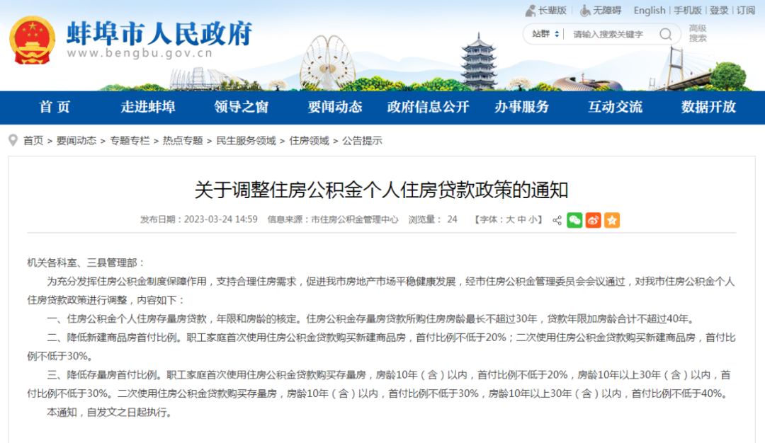 3月24日,蚌埠市住房公积金管理中心发布《关于调整住房公积金个人住房贷款政策的通知》,表示为充分发挥住房公积金制度保障作用,支持合理住房需求,促进蚌埠市房地产市场平稳健康发展,经市住房公积金管理委员会会议通过,对蚌埠市住房公积金个人住房贷款政策进行调整。