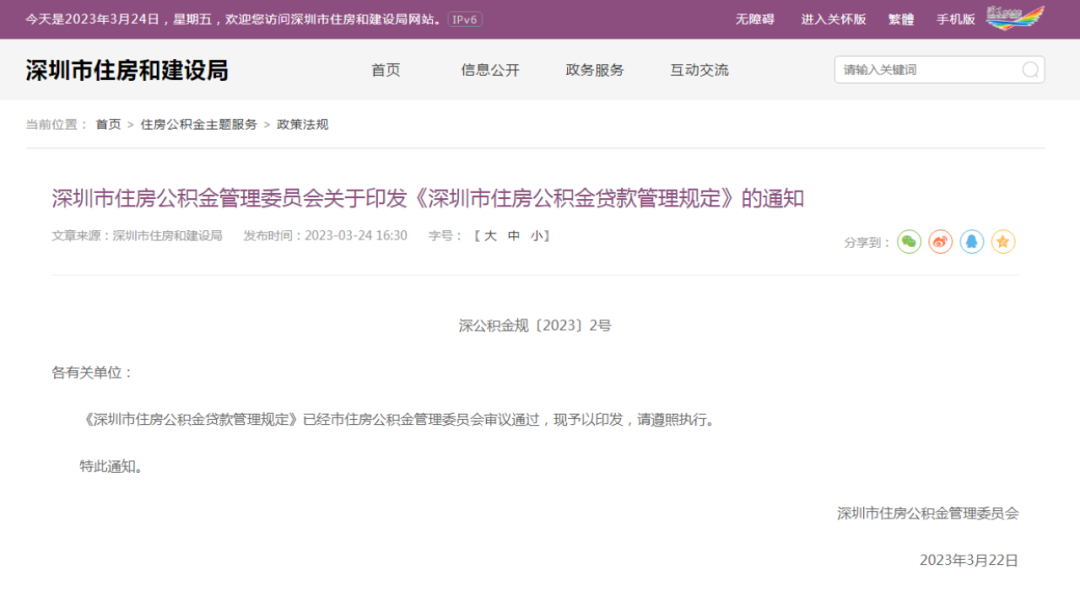 3月24日,深圳市住房公积金管理委员会发布了《深圳市住房公积金贷款管理规定》,其中,明确了公积金贷款额度的规模,并对于几类购房需求明确给予了公积金贷款支持。