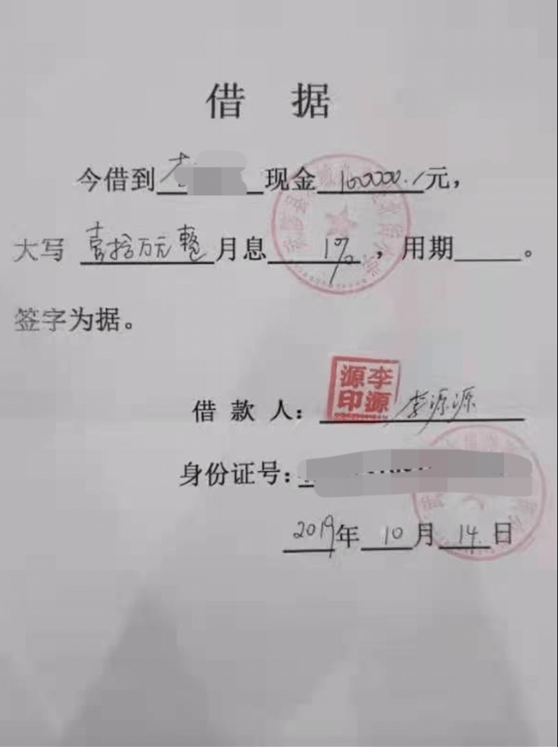 学生家长提供的借据。