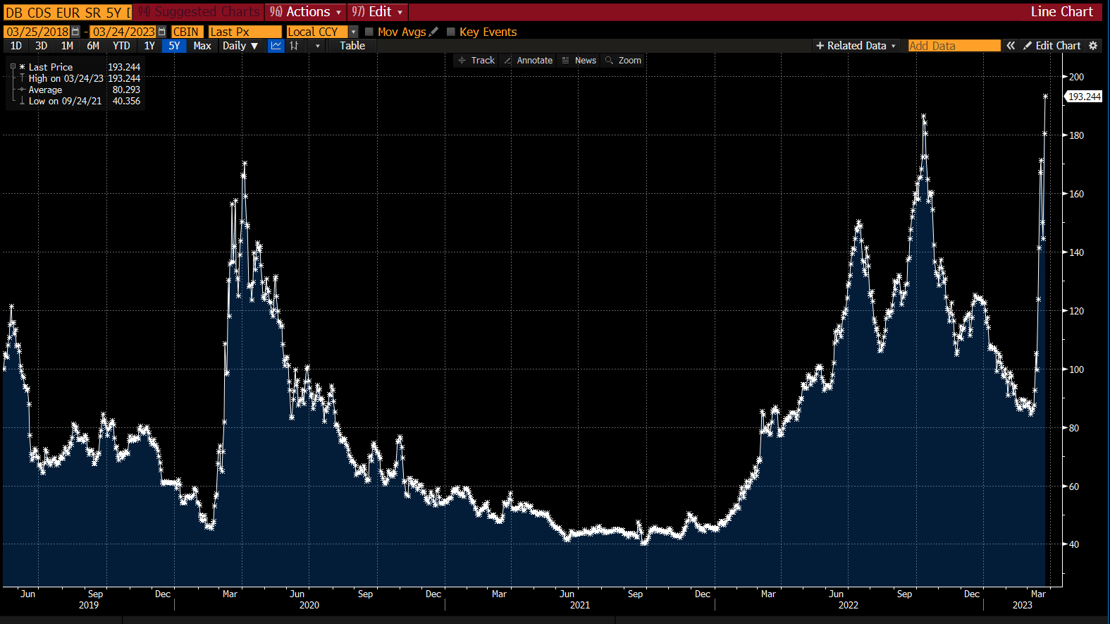 德银CDS飙升至173个基点(图片来源:彭博社)