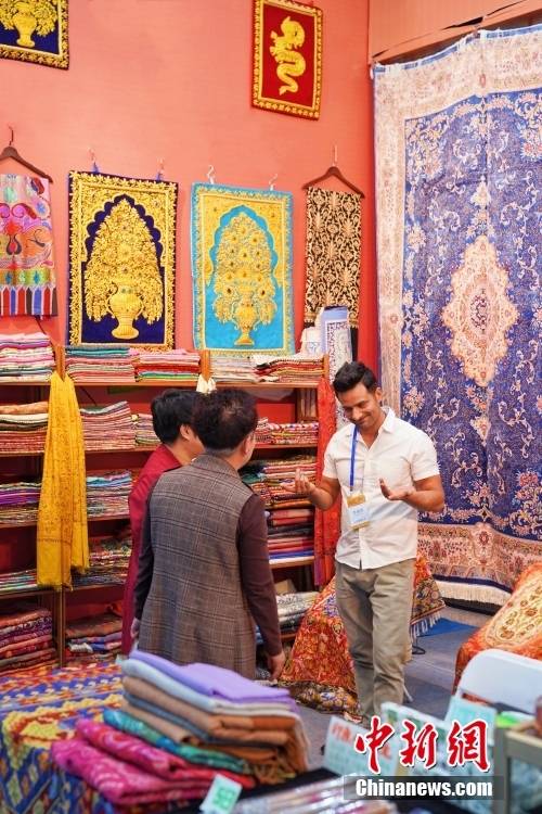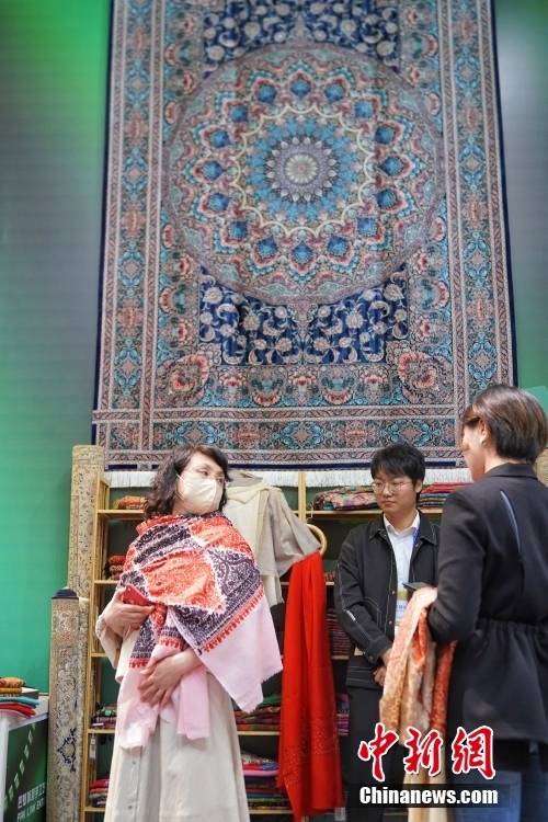 观众体验特色披肩。中新社记者 孙汉仑 摄