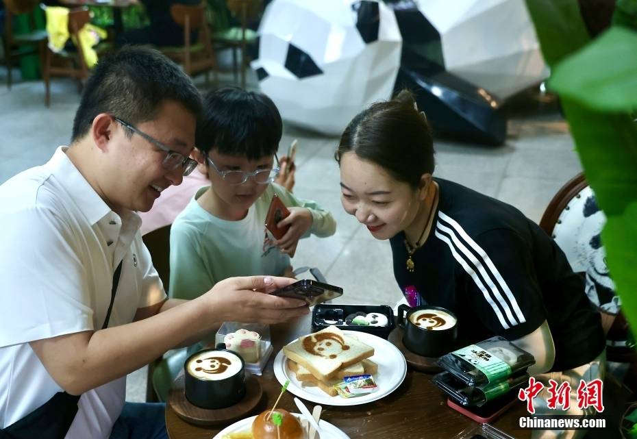游客在熊猫餐厅品尝熊猫主题餐饮。中新社记者 易海菲 摄