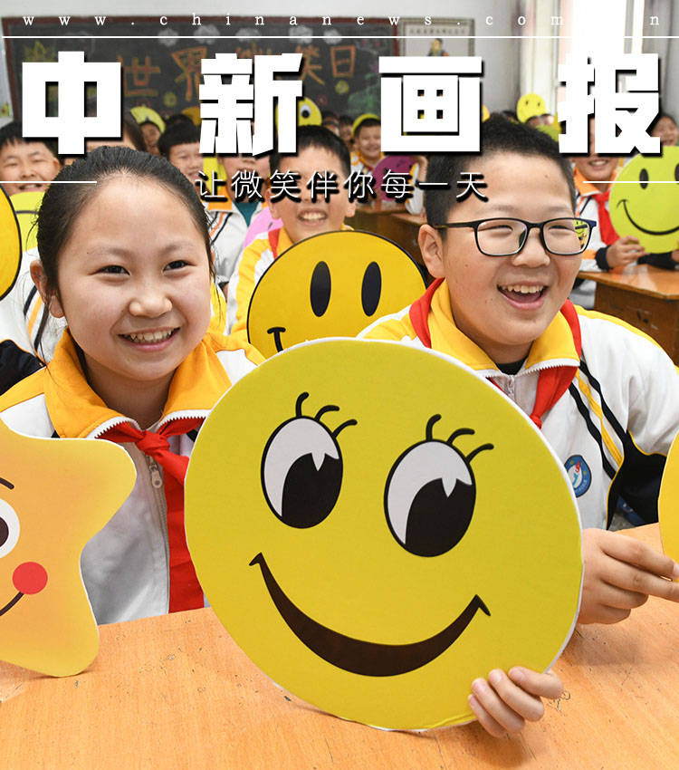 图为学生们迎接世界微笑日,开展“微笑进校园 快乐每一天”活动。