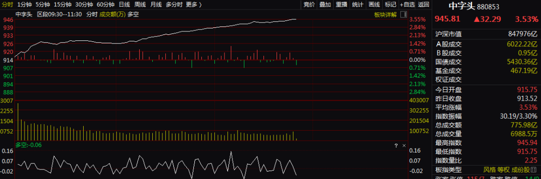受此提振,中字头板块全线拉升,相应的指数大涨3.53%。上证指数更是受此刺激,狂涨超50个点。这种行情还是在2017年底-2018年初出现过,再往前就是2014-2015年的大牛市和2012年底的启动行情。