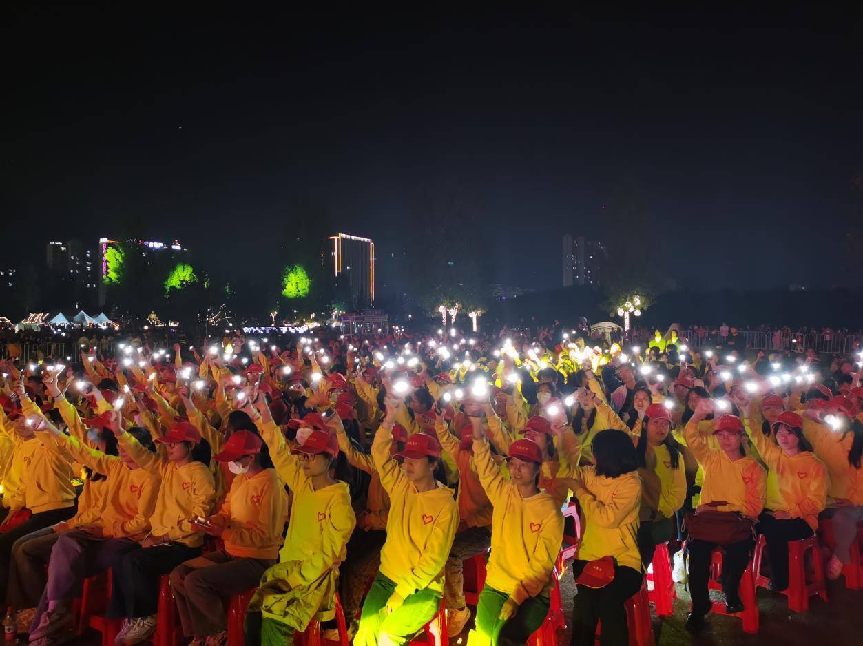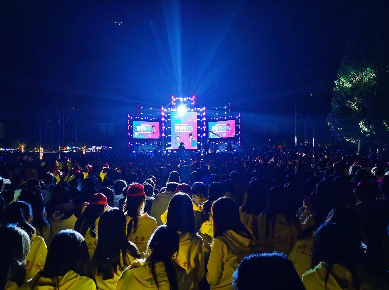 5月7日晚7点,华灯初上,信阳市青年营地里已经聚满了围观群众,信阳市直有关单位负责人、各县区党政主要负责人、社会各界青年代表、高校师生代表等千余人有序就座,特别邀请的今年茶文化节盛会所有工作人员及大学生志愿者也端坐台下,大家伙儿拿着手机,有的开着直播,有的呼朋引伴,还有的不停地“疯狂”自拍,兴奋之情溢于言表。