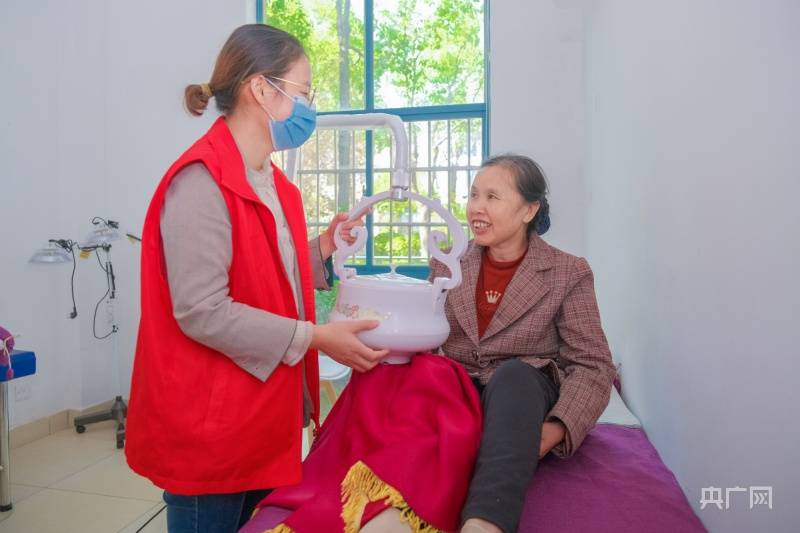 湘郡社区居家养老服务站,社工为居民做艾灸(章帝 摄)