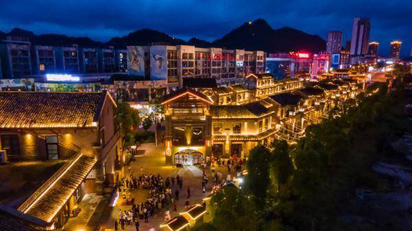 重庆市秀山土家族苗族自治县青春集市在微电影城文创街区热闹开市。(无人机照片)胡程摄