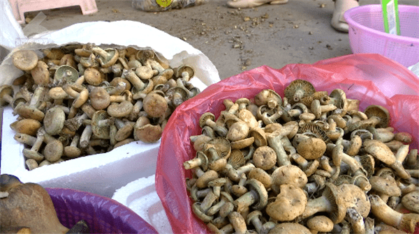 木水花野生菌交易市场市场部主管 翟占世:“今年野生菌比往年少了很多,今年比较多的几种菌子都是外省过来的,像谷熟菌、荞面菌啊,这两种。本地就是以鸡枞和黑牛肝为主,黑牛肝稍微多一点,鸡枞就比较少了,基本上能有十几二十斤就不错了。”