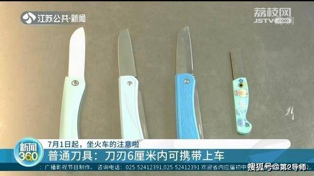 江苏公共·新闻频道《新闻360》报道:7月1号以后,刀刃在6厘米以内的可以携带上火车。图源:江苏新闻