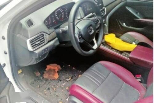 在辖区高雄路53号某独栋居民楼下,民警看到受害人的白色轿车车顶天窗被砸开一个大洞,在车辆的主驾驶位地毯上,散落着大小不一的碎砖块。若有人员在场,后果不堪设想。