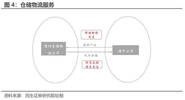 仓储物流服务是指境外公司把产品运输到境内的仓储物流公司,给境外公司提供产品的入库、盘点、存储等服务,提供这些服务往往都在海关特殊监管区域(如保税区等)内进行。但由于物流货物进出我国关境,发生了出入境的转移,会被纳入海关进出口统计,但货物的所有权仍保留在境外公司手中,不计入国际收支货物贸易统计中。