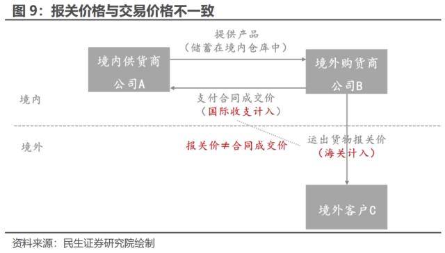 海关统计基于货物进出口的报关价,由于存在代报关、跨境时点货权尚未转移或者在非居民间转移等情形,可能产生报关价与交易成交价偏离较大的情况。