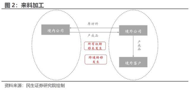 由于生产环节复杂化和压降成本的诉求,越来越多的生产环节被拆分在世界各地进行,这也导致了部分贸易涉及货物跨境移动,但不涉及货物所有权转让。最为突出的有两类: