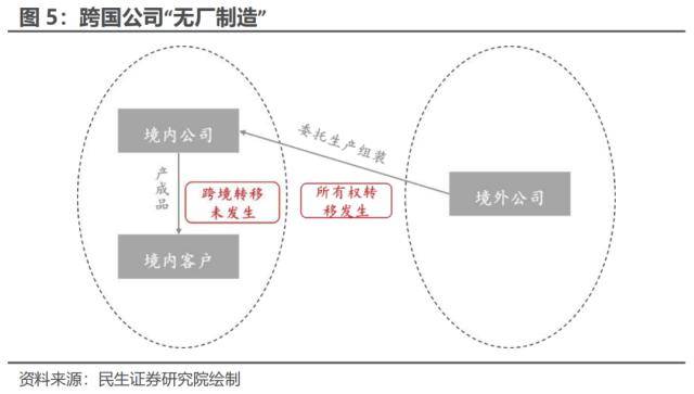最为典型的是跨国企业“无厂制造”:有些境外公司不在本国设厂,而是委托境内的公司代为生产,并将生产完的产品直接面向生产地所在国的客户进行销售推广,这种现象在电子产品行业较为明显。