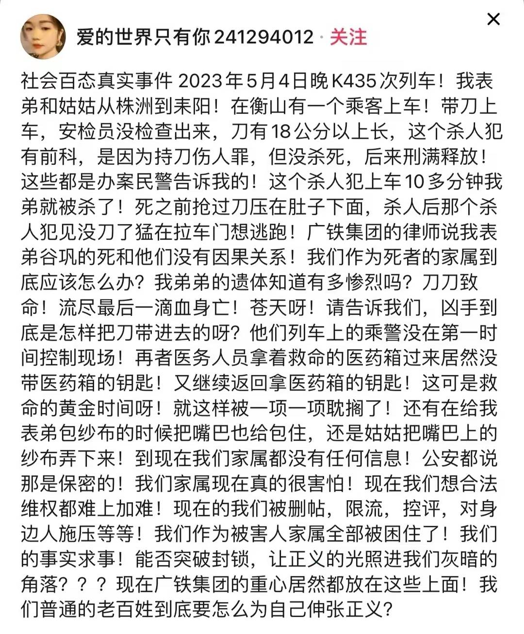 5月4日,K435次列车,一名27岁的男子被陌生人持刀杀害!