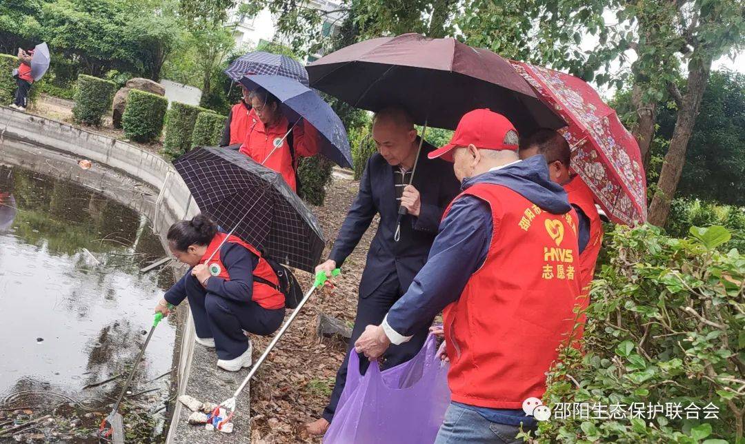 5月7日上午,邵阳市生态环境保护志愿者联合会32名志愿者,冒着霏霏细雨,再次来到号称要让邵阳人民骄傲500年的紫薇博览园,助力园区保洁建设。