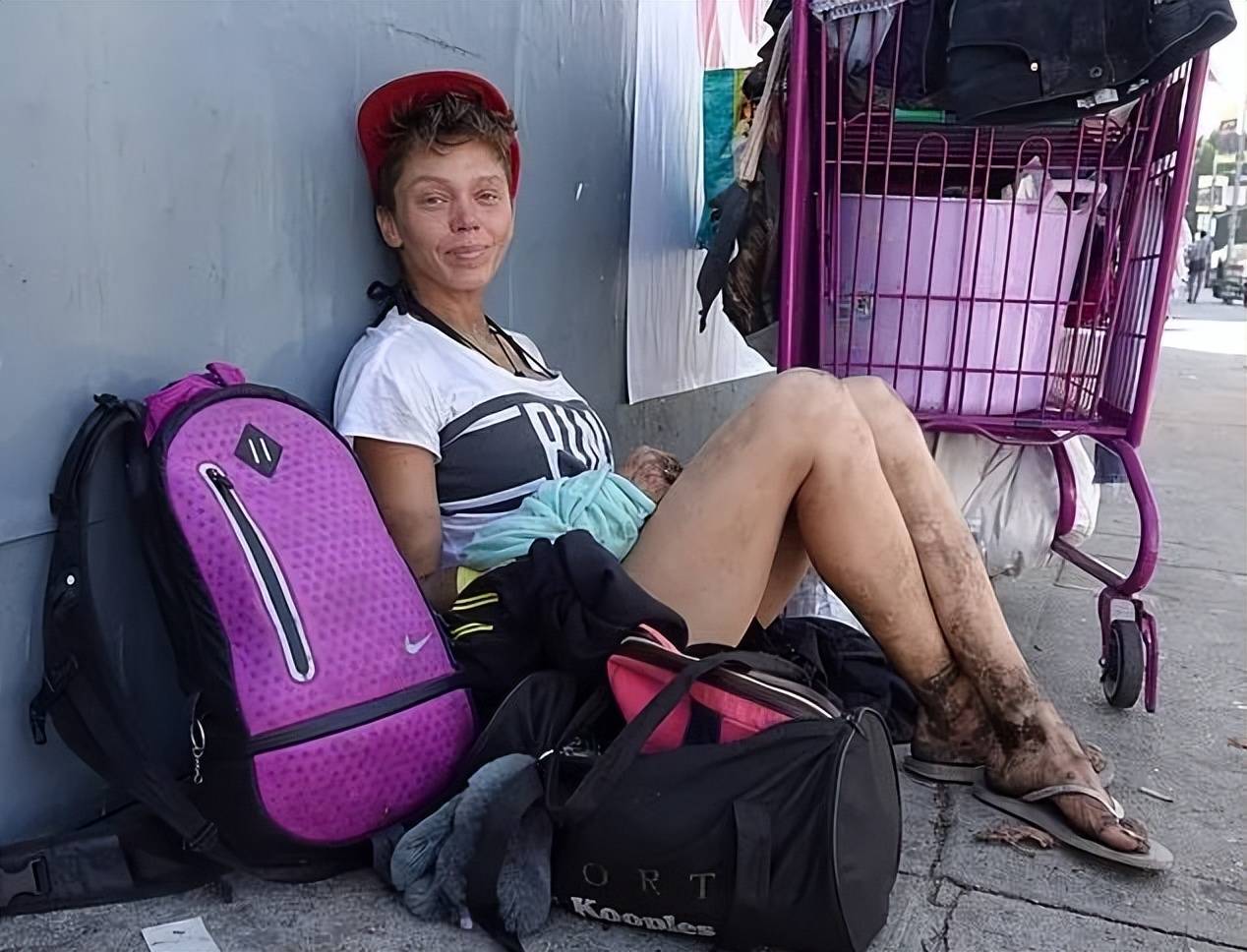 你能相信,上图这个流浪女是一个辣妹名模吗?