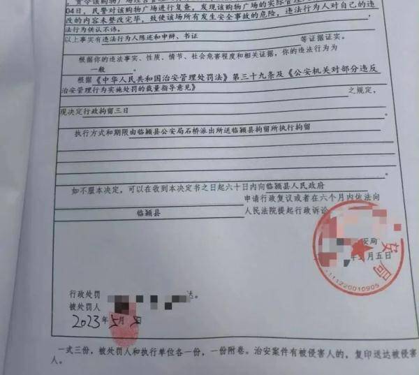根据《中华人民共和国治安管理处罚法》第三十九条及《公安机关对部分违反治安管理行为实施处罚的裁量指导意见》相关规定,公安机关依法对该购物广场的实际管理人郭某某给予行政拘留三日的处罚。