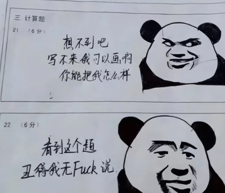 若是这样的一幕,单独出现在其他纸上,还会引起老师的夸赞,但出现在答题卡上,就不应该了,老师会非常生气,也会给予严厉的批评,同时,也会降低在老师心目中的印象,对学生没有一点好处。