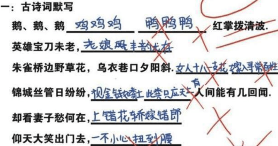 普遍来看,女生没有男生调皮,在做事的时候,也会比男生认真,但这名初三女生却是个例外,她在考试时,纯属“胡编乱造”,初三女生“0分试卷”走红,答案叫人笑出眼泪,“仰天大笑出门去,一不小心扭到腰”,“却看妻子愁何在,上错花轿嫁错郎”。