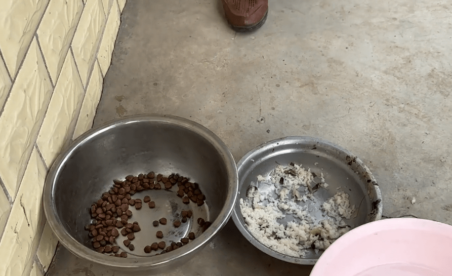老人平日里也给这只萨摩耶喂狗粮和稀饭