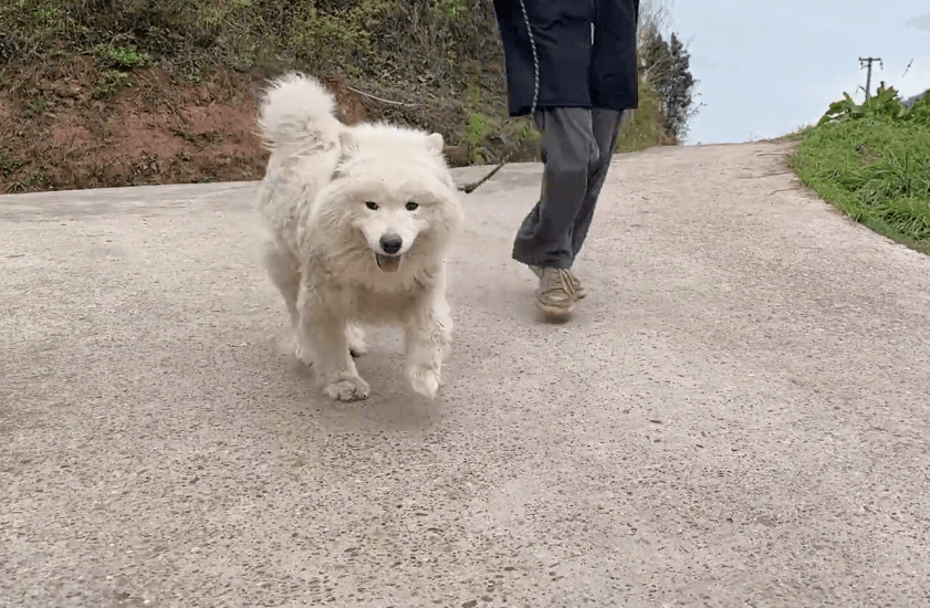 跟着小哥离开,这只萨摩耶似乎也非常开心