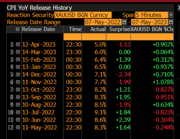 最后,我们需要提醒投资者的是,今晚不妨还可以把一部分注意力放在黄金的身上。在过去六个CPI发布日,黄金在数据发布后的5分钟内均出现了上涨,今晚是否会第七次出现这一幕,值得黄金交易员们留意。