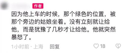 拍摄者表示,老人上车的时候,爱心座被姑娘坐着,没有立刻让给他,而是犹豫了几秒,老人就突然暴怒了。