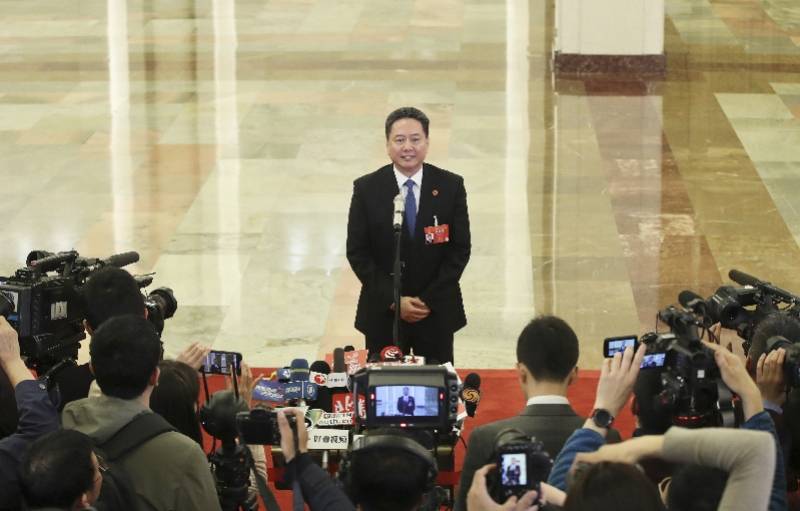 2019年3月5日,交通运输部部长李小鹏在全国两会“部长通道”接受采访。 新华社发
