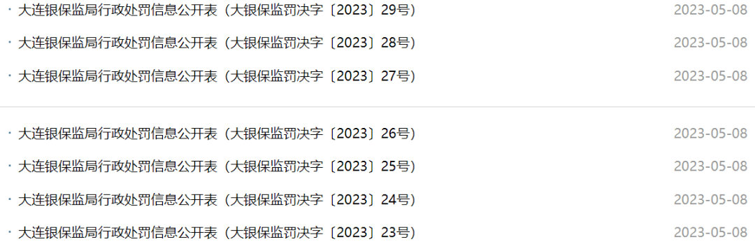 5月8日,大连银保监局连开七份罚单,处罚对象为渤海银行股份有限公司大连分行及相关责任人。