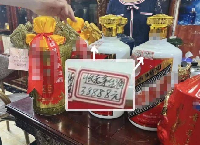 在针对白酒的检查中,现场发现茅台酒瓶大小、形状各异。茅台酒厂鉴定专家指出,厂家从未生产过此类茅台酒。商行负责人辩称此类茅台酒为“特殊定制”“仅用于摆设”,但酒瓶上却又标注了“38888元”等字样。