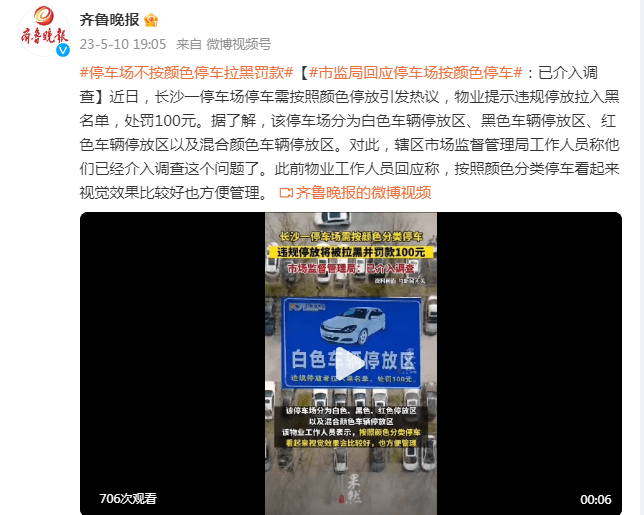 原标题:长沙一停车场停车需按照颜色停放?市监局回应:已介入调查