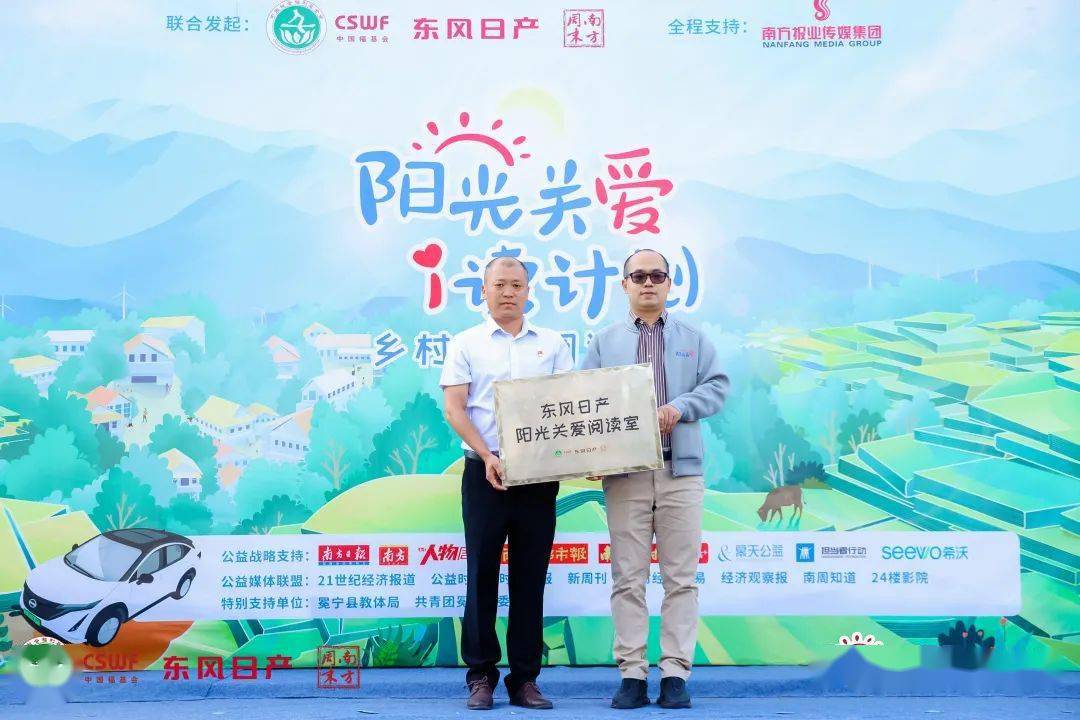 主办方代表东风日产公关传播科科长许友天,南方人物周刊总经理、南方周末公益基金秘书长李佩佩,冕宁县政府督学、教体科局党组成员张正洪,共青团冕宁县委办公室主任彭也,以及来自东风日产、南方周末、冕宁县教体局、冕宁县团委的相关人员一同出席活动,并由东风日产代表向校方代表授牌,宣布高窑小学校的“东风日产阳光关爱阅读室”正式启用。