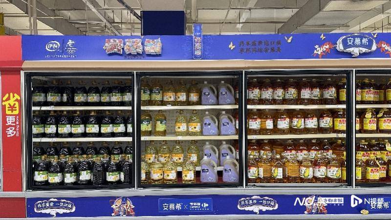 家乐福百信广场店冷藏柜放置了大量食用油和纸巾,冯晔拍摄