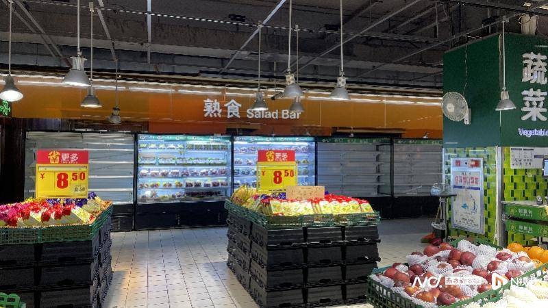 南都湾财社记者走访发现,该店目前仍在正常经营,与年初不同,超市货柜并未出现大量空置的情况,不过,生鲜区和冷藏品区依然有少量货柜出现商品空缺,而且,不少冷藏柜中还放置了大量卫生用纸和本只需常温保存的食用油。